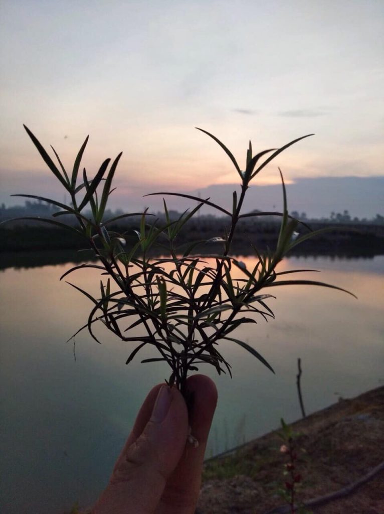 + Lá màu xám, hơi thuôn nhọn ở đầu, dai, gần như không có cuống. Lá dài khoảng 1,5 – 3,5 cm, rộng 1 – 2 mm.